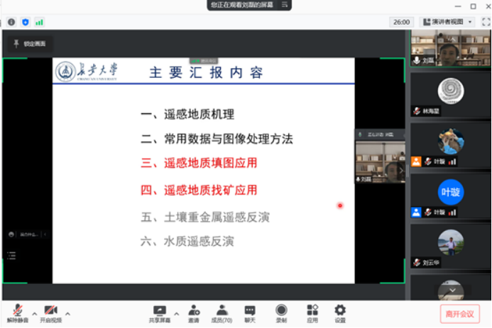 “齐心抗‘疫’不停研”第十场报告暨“资源论坛”第一百六十三讲线上报告顺利举行。此次特邀刘磊教授作题为“多源遥感协同地质矿产应用”和2020级硕士研究生瞿植同学作题为“人类足迹与气候变化对黄土高原景观生态风险的影响”的学术报告。草榴社区