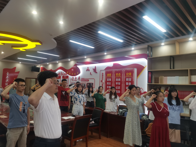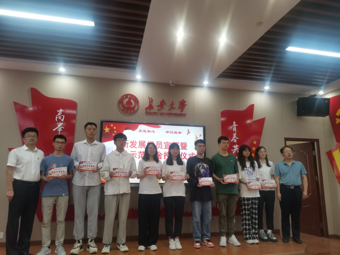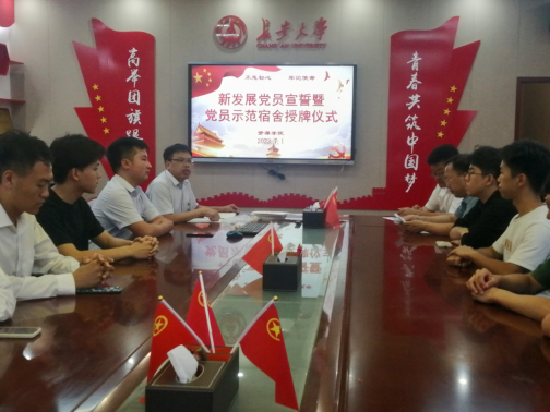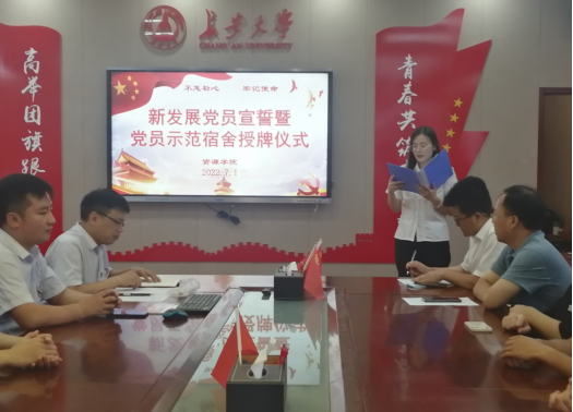 在渭水校区长安文化艺术中心党建活动室举行“青春献礼二十大 强国有我新征程”本科生新发展党员宣誓暨党员示范宿舍授牌仪式。学院党委书记黄喜峰、党委副书记武永江、团委书记巩昌盛出席仪式,本科生全体学生党员参加仪式。仪式由学办主任查方勇主持。