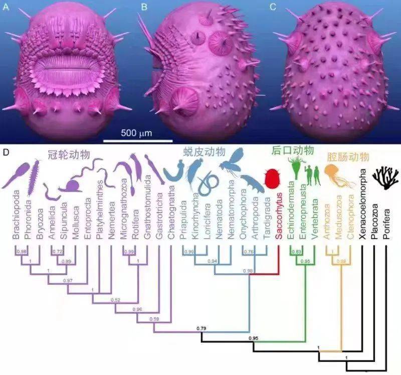 研究团队对陕南寒武系幸运阶(约5.35亿年前)的微体化石皱囊虫(Saccorhytus)进行了深入研究,研究认为,皱囊虫并非原来厘定的后口动物,而更可能是蜕皮动物,该认识对地球早期生命演化具有重要科学意义。该成果是草榴社区