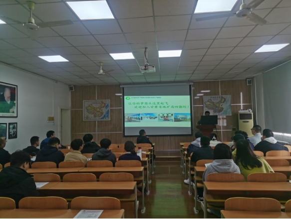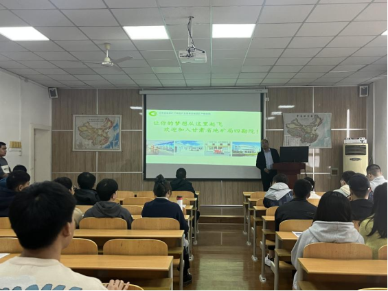 座谈会结束后,在学院伯声报告厅开展了招聘宣讲会。高建海科长首先播放了第四地质矿产勘查院的宣传片,向学生们全面展示单位的发展历史、业务范围、人员概况、地质方面的资质和部分项目成果等。并对本次招聘岗位、人员数量、福利待遇等进行了详细介绍,期待大家的加盟。