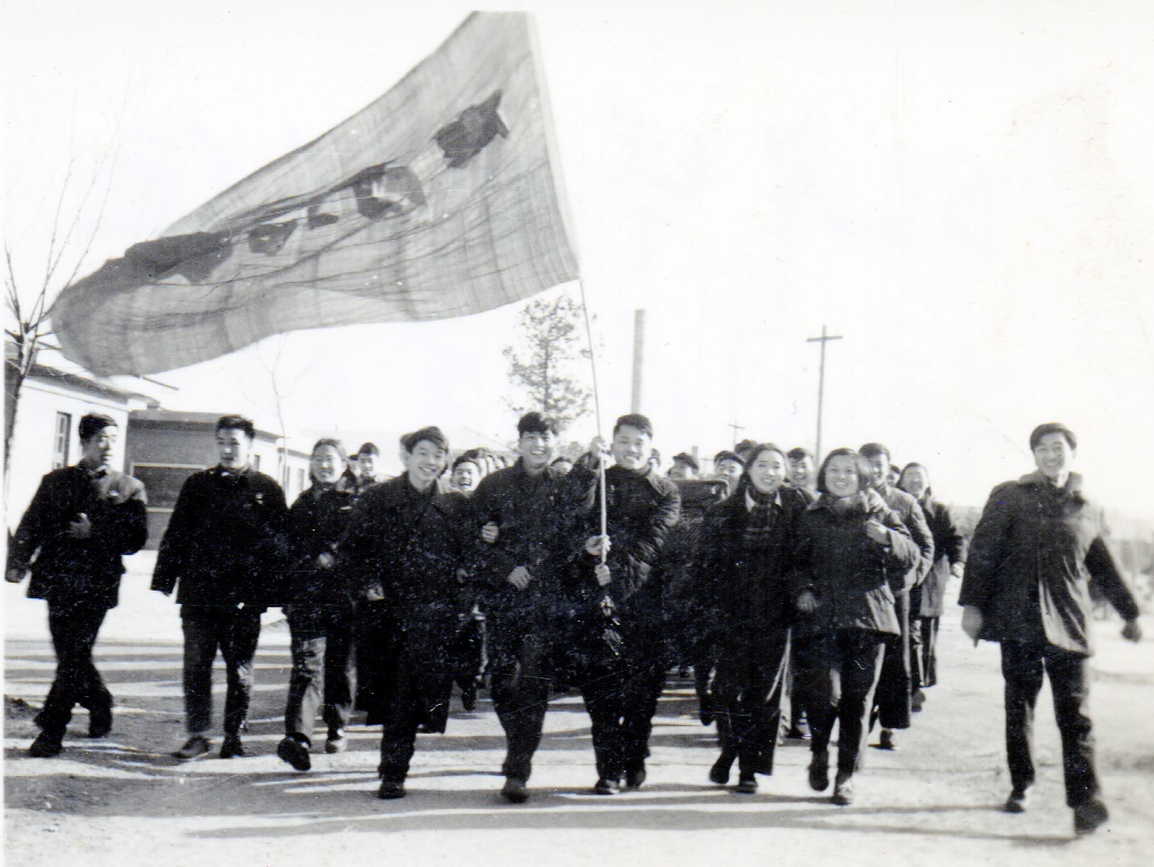 北京地质学院本科毕业执旗校园庆祝(1956年 执旗者:汤中立)
