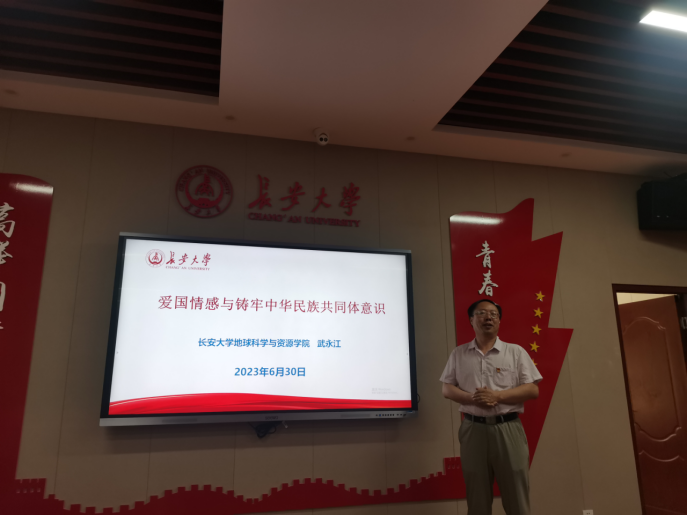 学院党委副书记武永江以“爱国情感与铸牢中华民族共同体意识”为题给全体党员讲授了一堂生动的专题党课。他重点围绕铸牢中华民族共同体意识的爱国情感诉求、爱国情感动力和爱国情感策略展开,在讲解中引用了大量党史资料和现实事例,给党员以深刻的思想启迪和精神鼓舞。