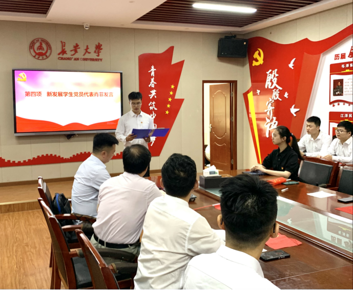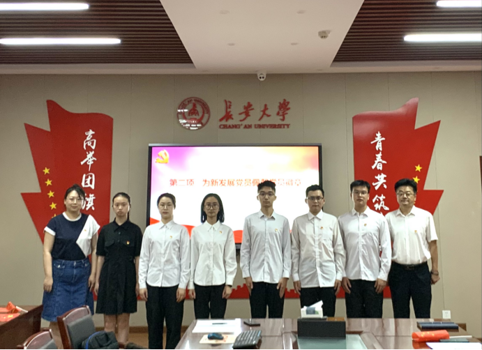 首先,学院党委书记黄喜峰和组织委员黎皛为新发展学生党员佩戴了党员徽章;学院党委书记黄喜峰带领全体党员面向党旗庄重宣誓。
