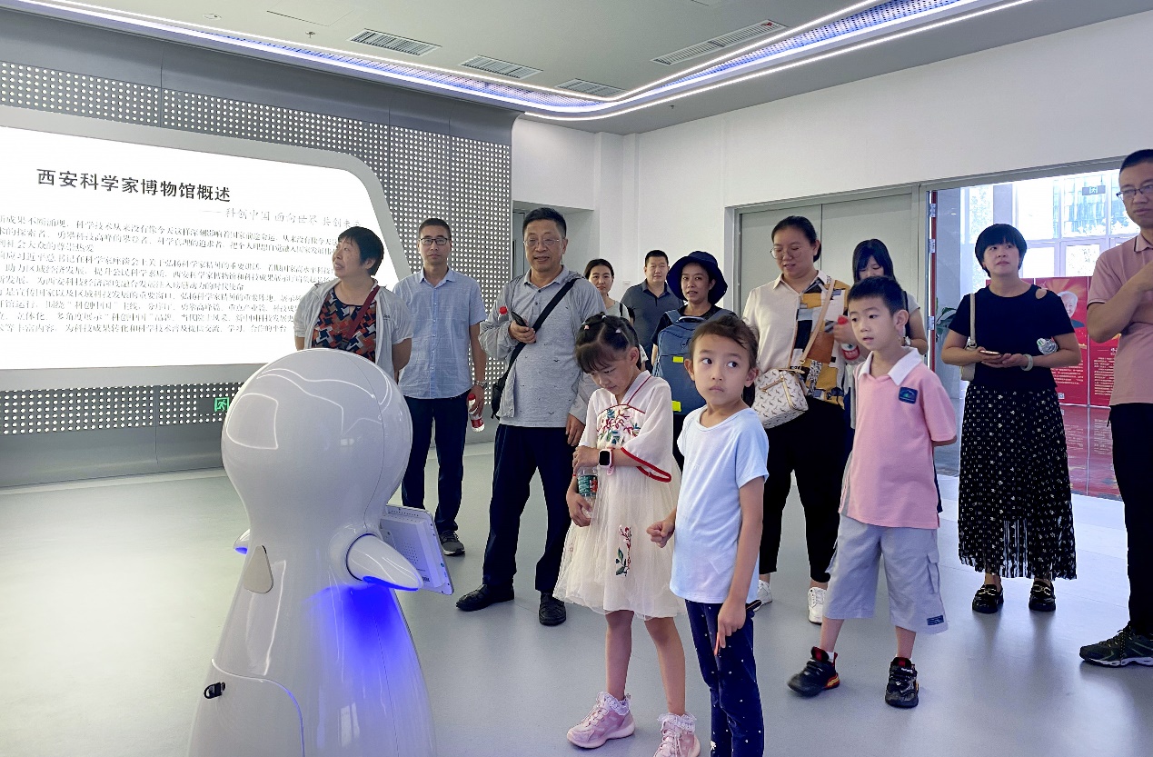 重点实验室部分群众教师及小学生一同参加活动。在博物馆讲解机器人小博的带领下,大家参观了博物馆,多角度了解了“科创中国”品牌、当代院士风采、新中国科技发展史、科技成果向现实生产力转化的进程等丰富内容,近距离感受了西安20余家高校和企业科技成果与产品的魅力。参观过程中,大家不时驻足观看,交流参观体会。