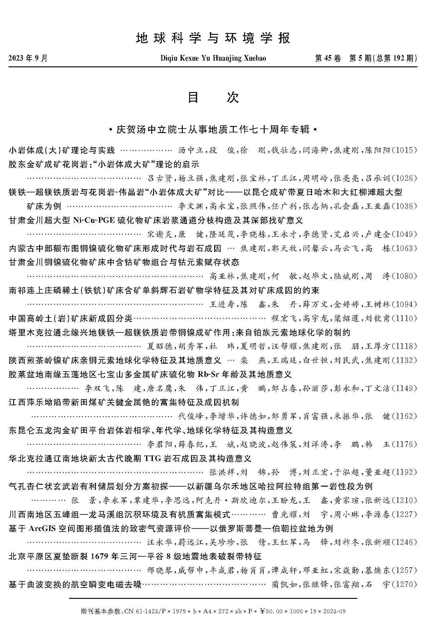 《地球科学与环境学报》继2021年成功出版“庆祝长安大学建校七十周年专辑”(上)(中)(下),2022年成功出版“庆祝西安地质调查中心组建六十周年专辑”(上)(下)、“纪念刘国昌先生诞辰110周年专辑”,2023年成功出版“《地球科学与环境学报》更名二十周年纪念专辑”(上)(下)之后,在精神传承型专刊方面的又一力作。