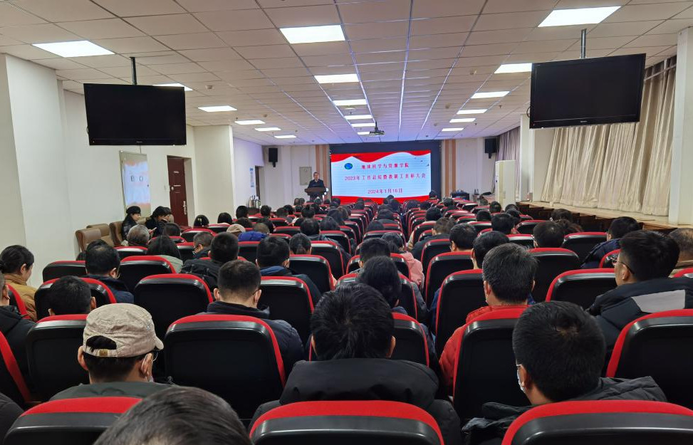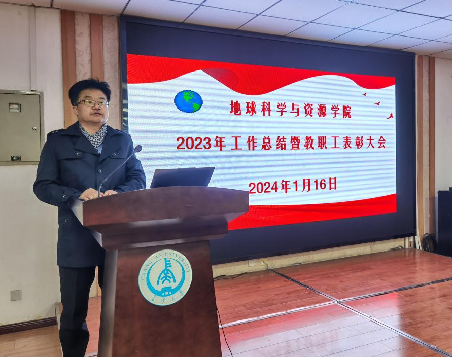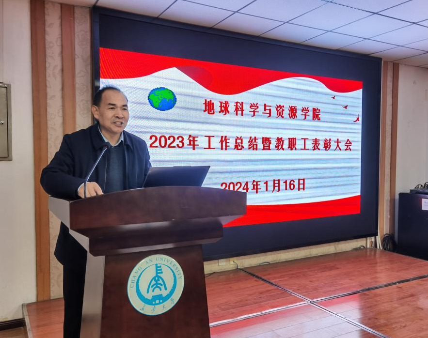 在南校区东院地学科技大厦三楼报告厅召开了2023年工作总结暨教职工表彰大会,学院全体党政领导和110余名教职工参加了会议。大会由党委书记黄喜峰主持。