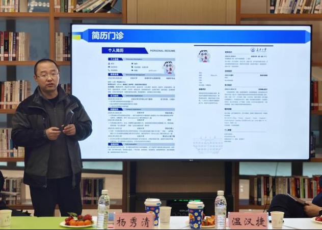 赵裕民主任为学生们详细解读了就业形势,并提供了深度求职指引。他建议同学们树立普通劳动者观念,秉持“先就业再择业”理念、跳出“幸存者偏差”、积累经验、提升职业胜任力。会上,他现场开通了“简历门诊”,针对如何有效突出个人优势、量化展示成果以及优化简历排版等问题,提出了具体且切实可行的指导建议。