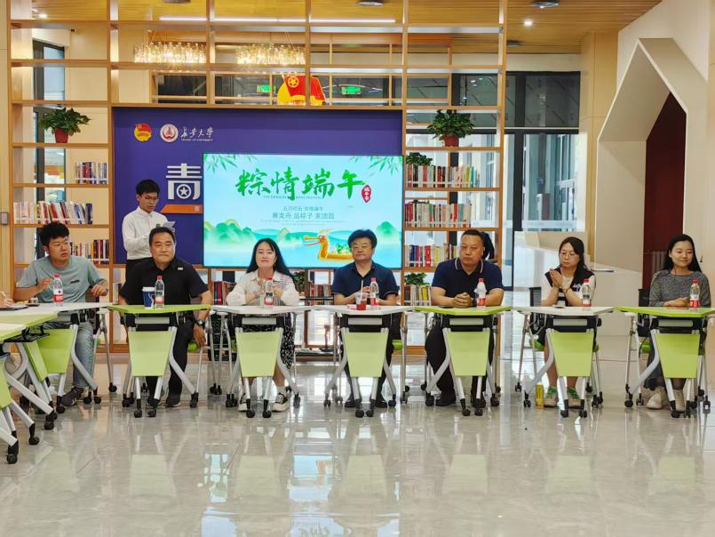 在鸿渐园青年会客厅举办“粽香传情扇绘同心”——少数民族团体心理辅导活动,学院党委书记黄喜峰、副院长副书记刘会涛、副院长李佐臣、党委副书记许晨、学办主任黎皛、团委书记巩昌盛、辅导员张凤、樊惠彬及少数民族学生齐聚一堂,在传统节俗中编织心灵纽带,在文化交融里凝聚情感共鸣。