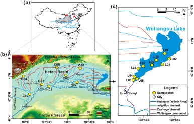 原生劣质地下水在全球广泛分布,影响着数亿人的饮水安全。对于干旱和半干旱地区地下水中高砷和高氟共存的原因,至今仍存在争议。河套平原位于黄河流域中游(图1),是典型的干旱内陆高砷、高氟地下水分布区,本团队对河套平原地表水体进行了系统研究。