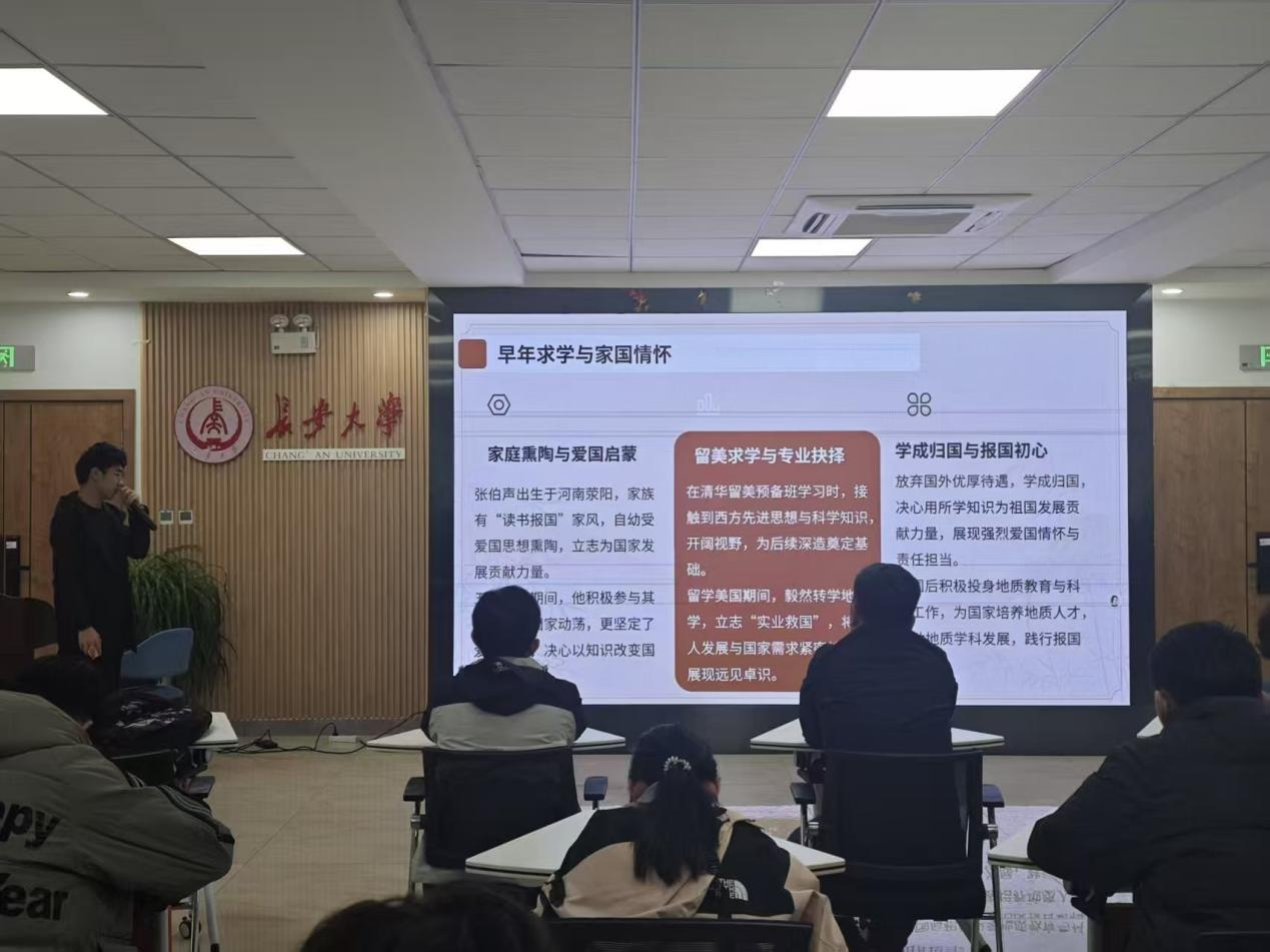 十二位同学以图文并茂的形式,分别对《张伯声传》每一章节的主要内容作了介绍,为大家展现了张伯声院士从寒门学子成长为地质学泰斗的生动故事,让大家感受到了张伯声院士一生对科学锲而不舍的执着探索、对教育的默默无私奉献,以及对国家满心的赤诚热爱;分享人还分享了自己阅读《张伯声传》的心得体会,号召大家向张伯声院士学习,心怀祖国和人民、勇于担当和奉献,为地质强国建设贡献青春力量和智慧。孙舜琦朗诵了书中张伯声院士的至理名言。