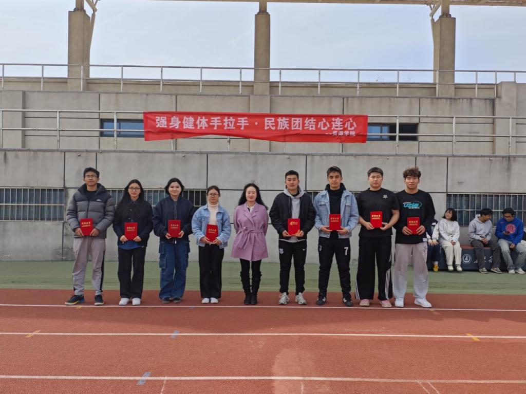 在北校区西区操场举行“强身健体手拉手·民族团结心连心”之民族学生拔河友谊比赛,学院党委副书记许晨、团委书记巩昌盛、兼职辅导员王乐和五支参赛队伍参加比赛。