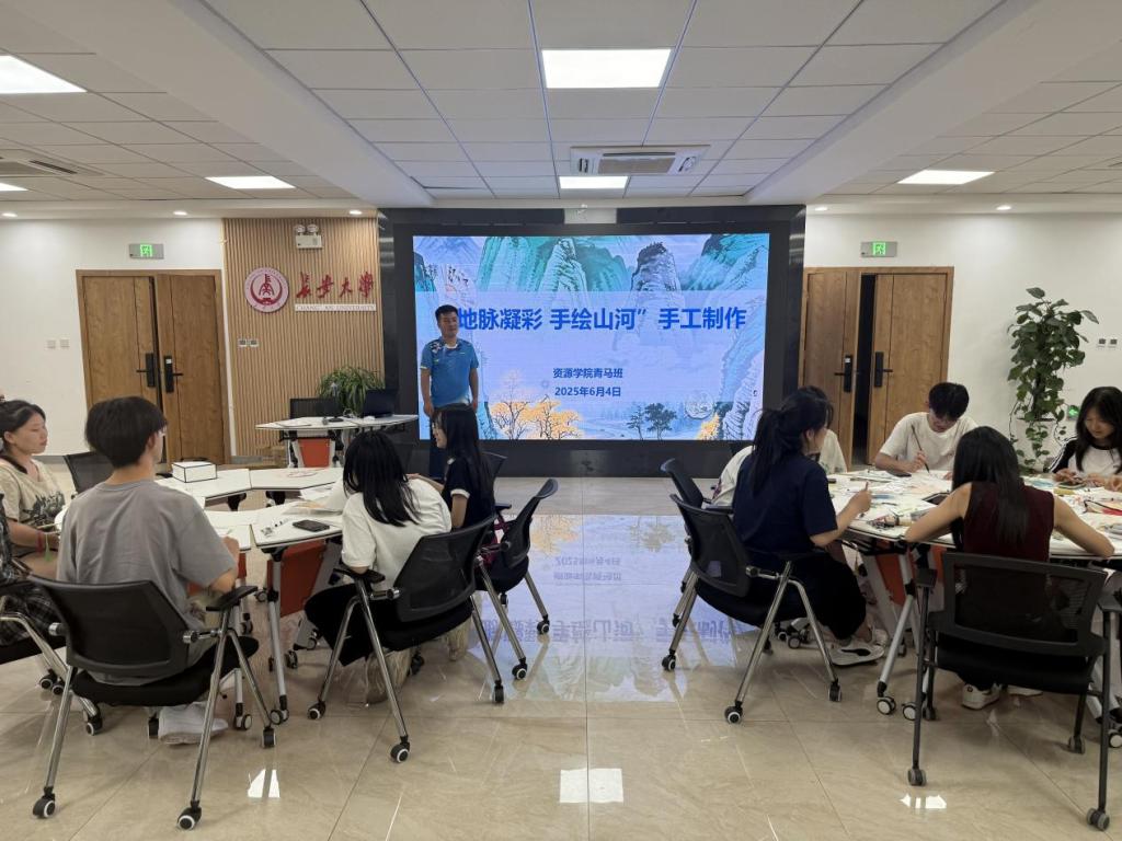 组织青马班学员在朝晖园学生社区团体活动室开展"地脉凝彩·手绘山河" 手工制作活动。学院团委书记巩昌盛与全体青马班学员齐聚一堂,大家在动手实践中体验传统手工艺的魅力,在绘画与书法中感悟自然伟力。