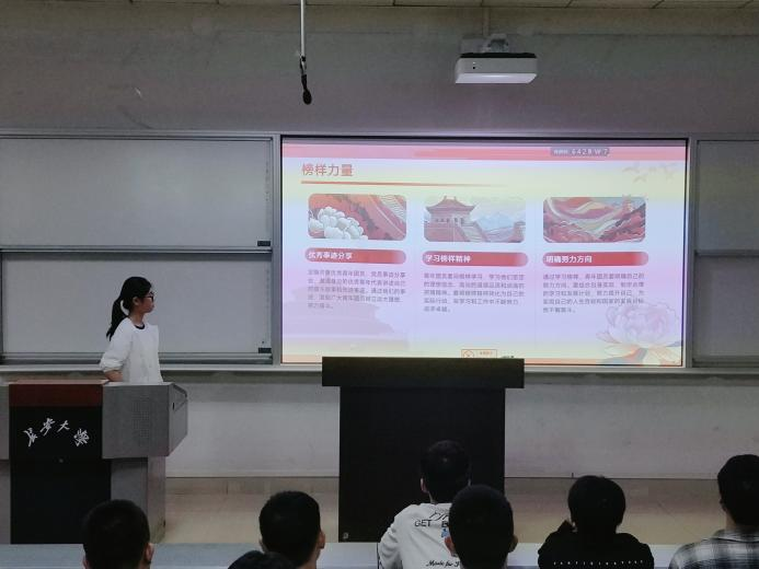 榜样分享环节,汪玲霞呼吁当代青年对标先进,深学其坚定的理想信念、高尚的道德品质与顽强的拼搏精神,切实将榜样精神内化为行动自觉,在学业钻研中精益求精,以实干实绩践行时代担当。