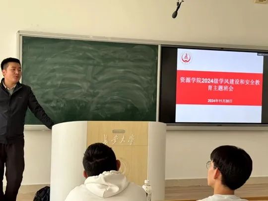2024级地质学类五班和六班在WH2307举办学风建设和安全教育主题班会。班会由院团委书记巩昌盛主持,五班和六班全体同学参加。