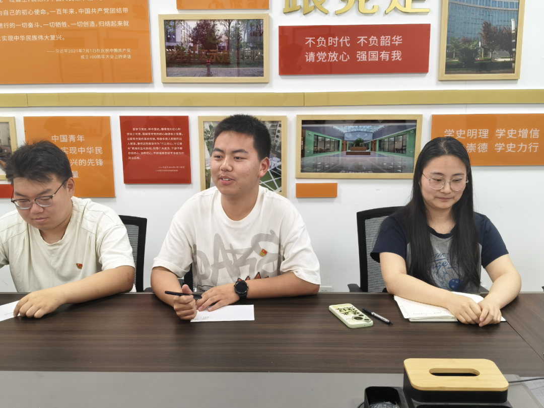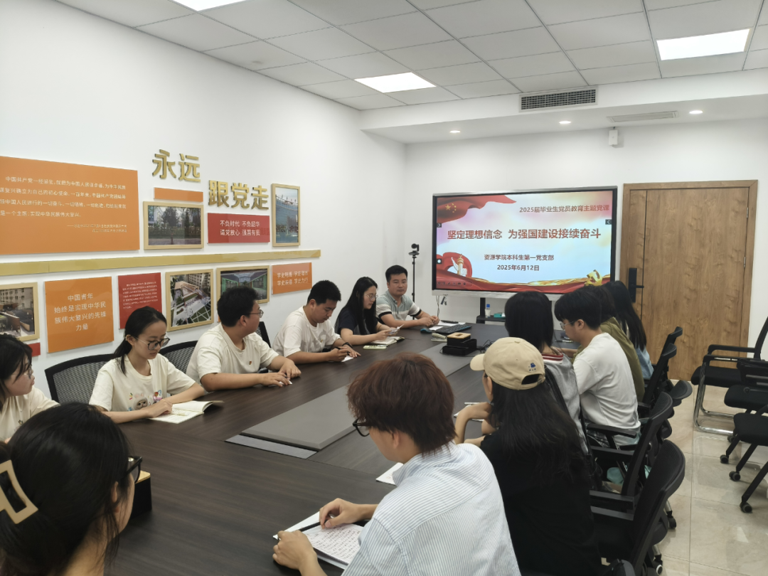 在交流分享环节,毕业生党员结合大学成长经历畅谈感悟,表达了对未来的期望。全体党员一致表示,将始终保持“闯”的劲头、“干” 的作风,在科研创新、基层服务、行业建设等各条战线发挥先锋模范作用,以“功成不必在我,功成必定有我”的胸襟投身强国建设。
