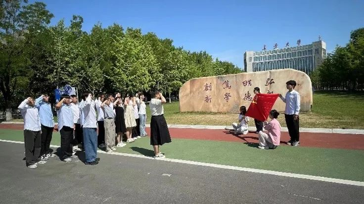 本科生第二党支部在北校区校训石处举办迎“七一”暨新党员入党宣誓活动,党支部书记黎皛和支部全体学生党员、预备党员参加。活动由支部组织委员王琦主持。
