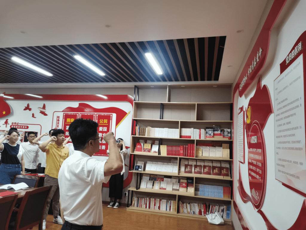 首先,学院党委书记黄喜峰和组织委员黎皛为新发展学生党员佩戴了党员徽章;学院党委书记黄喜峰带领全体党员面向党旗庄重宣誓。