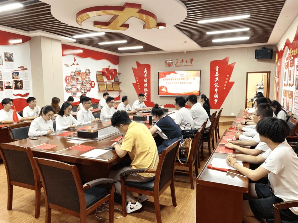 本科生党支部在北校区长安文化艺术中心党建活动室举办庆“七一”暨新发展党员入党宣誓活动,学院党委书记黄喜峰、党委副书记武永江、支部组织委员黎皛,2022级辅导员樊惠彬、孙梦瑶,支部全体学生党员和入党积极分子代表参加。活动由党支部书记巩昌盛主持。