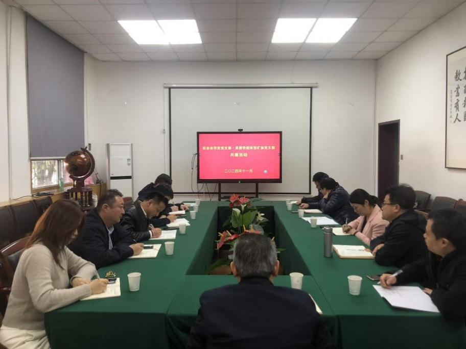 与珠宝矿加党支部开展共建活动。首先党委书记黄喜峰对杨红斌书记等的到来表示热烈欢迎,黄书记指出,开展支部共建是基层党支部工作的重要环节,双方加强沟通,以共建契机,发挥各自优势,提高人才培养和相关校企产学研合作的高质量发展,切实将支部共建工作做实落地。接着珠宝矿加党支部书记谢星介绍了支部概况和近年来取得的成果,对校级样板党支部的培育建设进行了经验分享。最后,社会合作处党支部书记杨红斌介绍了支部建设概况,并围绕校企合作、对外合作协议管理办法、教育基金管理等方面进行了详细介绍。杨红斌书记表示,努力构建“资源共享、优势互补、互相促进、共同提高”的党建工作新格局,将充分汲取草榴社区