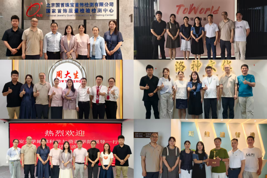 为深入贯彻落实党中央、国务院关于高校毕业生就业工作的决策部署,进一步推动校企协同育人,深化产学研结合,拓宽毕业生就业渠道,提升行业影响力,8月5日至8日,草榴社区 党委副书记许晨、珠宝矿加系副主任谢星、学生工作办公室主任黎皛、辅导员樊惠彬赴广东省深圳市、广州市开展访企拓岗与行业调研专项工作,先后前往深圳市中坦·比邻珠宝有限公司、北京国首饰珠宝检测有限公司国家首饰质量检验检测中心、周大生珠宝股份有限公司、珠宝国检集团培训中心(国检教育·深圳)、宝创会传媒有限公司、番禺抖音基地珠宝QIC检测中心、斯维迪智造(广州)珠宝科技有限公司、广州市番禺区珠宝设计与工艺师协会、嘉一珠宝有限公司开展交流座谈。双方围绕珠宝行业人才培养模式创新、毕业生实习实践基地建设、产学研项目对接及学术交流机制搭建等方面深入探讨交流。